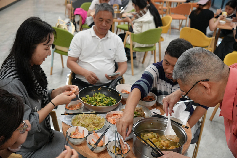 钟副校长与同学们边品尝美食边品茶交流,询问大家在校期间的学习生活情况,倾听同学们的心声。他以这种轻松温馨的方式,在劳动实践与美食分享中拉近师生距离。
