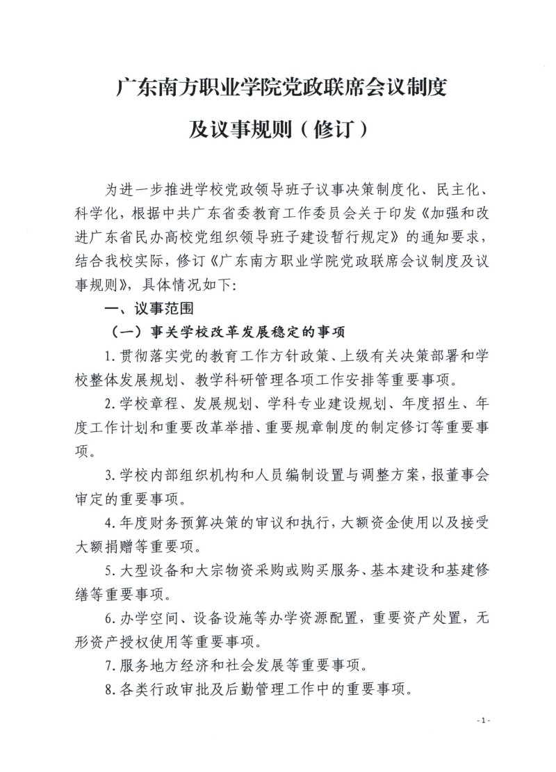 关于印发广东南方职业学院党政联席会议制度(修订)的通知