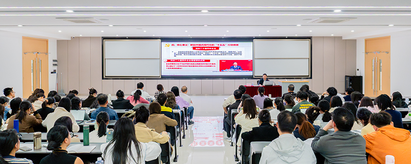2025年12月3日,广东南方职业学院党的二十届四中全会精神专题宣讲会在南校区3305室举行。校长钟仰进以《深学笃行四中全会精神 接续推进中国式现代化》为题,为医学院130余名教师作专题辅导报告,深入解读全会精神,系统阐述“十五五”时期的发展蓝图。