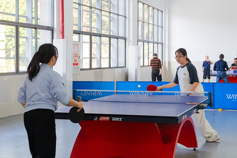 国球乒乓的赛场同样亮点十足,28名乒乓球爱好者齐聚校本部体育馆,参与男单、女双两个项目的角逐。单败淘汰制的紧张赛程中,选手们凝神聚力,发球、接球、扣杀一气呵成,小小的银球在球桌上快速穿梭,每一次精准落点都凝聚着技巧与专注,演绎着国球的独特魅力。
