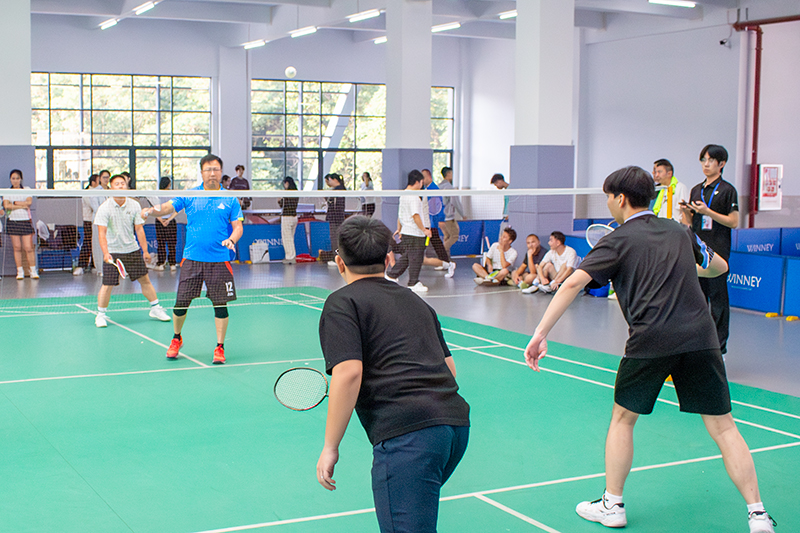 本届羽毛球混合团体赛是学校首次举办,吸引了8支队伍、共56名教职工运动员参与。比赛分别于校本部和南校区体育馆同步上演精彩对决。男双、女双、混双三大项目轮番登场,分组循环与交叉淘汰相结合的赛制兼顾竞技性与参与度,选手们挥拍如飞,羽毛球在球网间划出灵动弧线,尽显教职工们的灵动与风采。