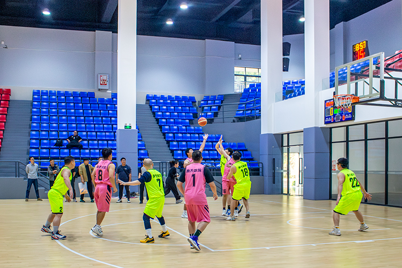 另一边的篮球场上早已人声鼎沸,来自行政职能部门联队、体育部及各二级学院的8支队伍、83名运动员英姿勃发,在校本部室内篮球场展开激烈角逐。小组循环赛与交叉淘汰赛的双重赛制,搭配最新篮球竞赛规则,让力量的碰撞、速度的角逐与团队的协作完美交融,每一次抢断、传球、投篮都引来场边阵阵欢呼。