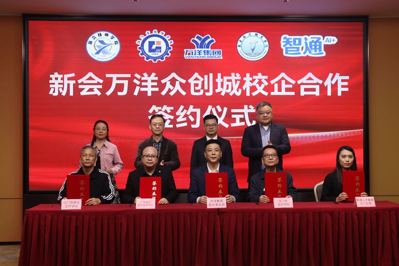 揭牌仪式后,我校与新会万洋众创城正式签订校企合作协议。根据协议,双方将围绕园区产业布局,在专业共建、实训基地建设、校企双导师队伍培育、毕业生就业推荐等方面开展深度合作,推动教育教学与产业需求精准对接,打造“校-企-园”协同发展的产教融合新模式。