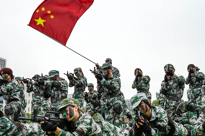 随后进行的特色方队展演将现场气氛推向高潮。匕首操方队动作干净利落,短棍术方队挥舞生风,擒敌拳方队出拳迅猛有力。破风八刀方队手持长刀列阵,以“手中大刀,承先辈真钢之志”的誓言赢得阵阵掌声。警卫拳方队、旗语方队、军体拳方队依次登场,各展风采。战术方队带来的反恐作战演练,模拟搜索前进、制服歹徒、解救人质等环节,动作娴熟、配合默契,展现了扎实的训练成果。医学院花样方队压轴亮相,通过不断变化的队列造型,为整场展演画上圆满而精彩的一笔。