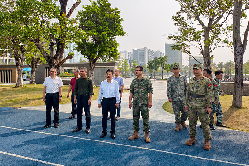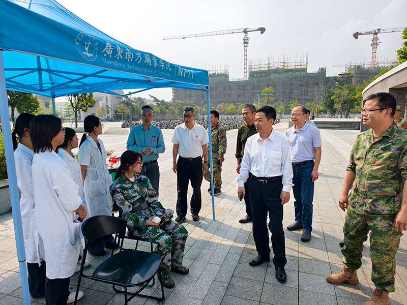 为扎实推进新生军训工作,切实关心参训师生的训练与生活,近日,党委书记廖葵中,校长钟仰进,副校长卢东亮、钟兆明深入军训训练现场,检查指导军训各项工作,亲切看望慰问正在刻苦训练的承训教官、参训新生和带班辅导员,向大家致以诚挚的问候和崇高的敬意。保卫处、学生处部门负责人及总教官陪同慰问。