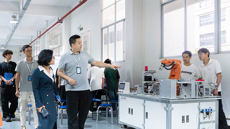 在实训中心负责人的引导下,江门日报一行参观了大学科技园,了解产教融合、实习实训、企业孵化等方面的实际成效。