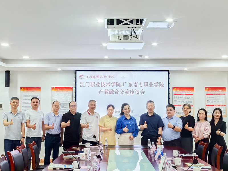 当天上午,交流在江门职业技术学院厚德楼会议室正式开始。在订单班、现代学徒制、现场工程师班等人才培养模式方面,双方深入交流了专业选择、课程体系构建、校企协同教学与工作安排等实践路径,并就教学管理、质量监控、学分置换等制度建设交换了意见。江门职院还将地方非遗文化融入专业教学,形成了可操作的经验,给我方带来启发。