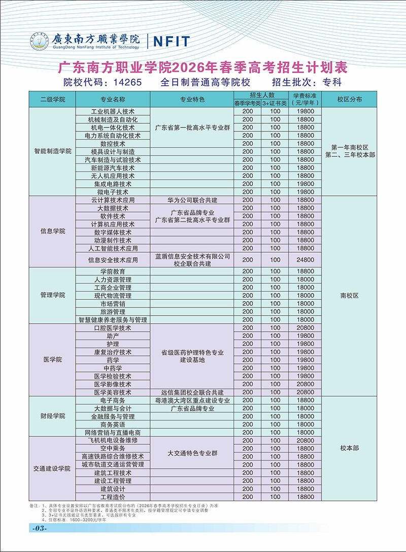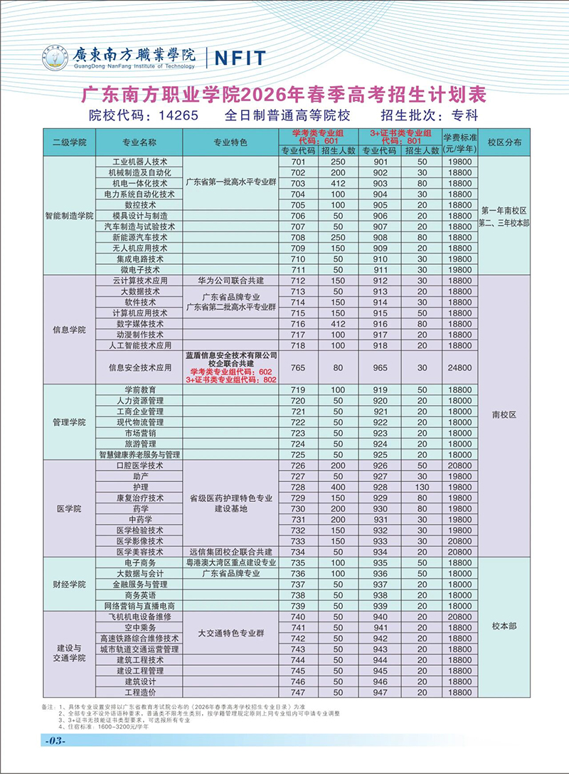 2026年广东南方职业学院春季高考招生简章