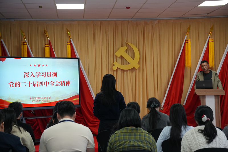 11月28日,书院管理中心党支部在厚德书院党建报告厅召开全体党员大会,专题学习中国共产党第二十届中央委员会第四次全体会议公报精神,并就如何贯彻落实展开深入研讨。会议由党支部书记黄永伦主持,支部全体党员参加。