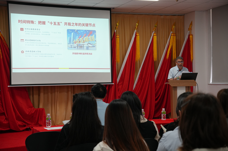 4月10日下午,南校区管委会书院管理中心党支部在厚德书院党建报告厅召开全体党员大会,专题开展树立和践行正确政绩观学习教育。会议由党支部书记黄永伦主持,邀请校党委委员、副校长钟兆明同志为全体党员讲授“深入学习贯彻习近平总书记关于树立和践行正确政绩观的重要论述”专题党课。