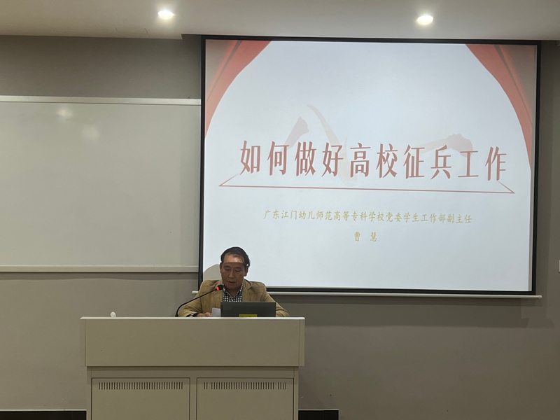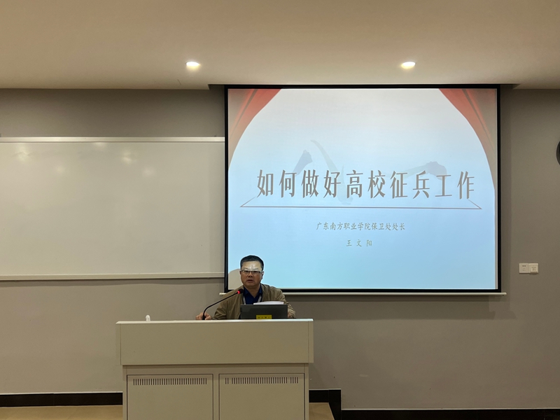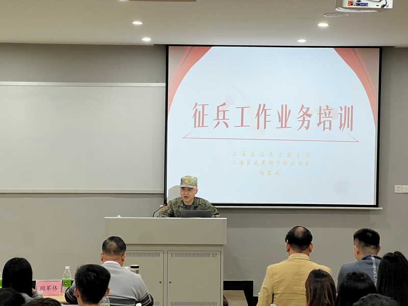 为进一步规范高校征兵工作流程,提升征兵工作人员业务能力,精准动员优秀青年学生投身国防和军队建设,近日,江海区人民武装部联合江海区退役军人事务局、江门幼儿师范高等专科学校,于广东南方职业学院校本部成功召开2026年征兵业务培训会。我校高度重视此次培训工作,保卫处处长、学生处处长,各二级学院分管学生工作副院长,学校征兵工作站成员、征兵专员及辅导员代表积极参会,全面学习征兵工作最新政策与业务规范。