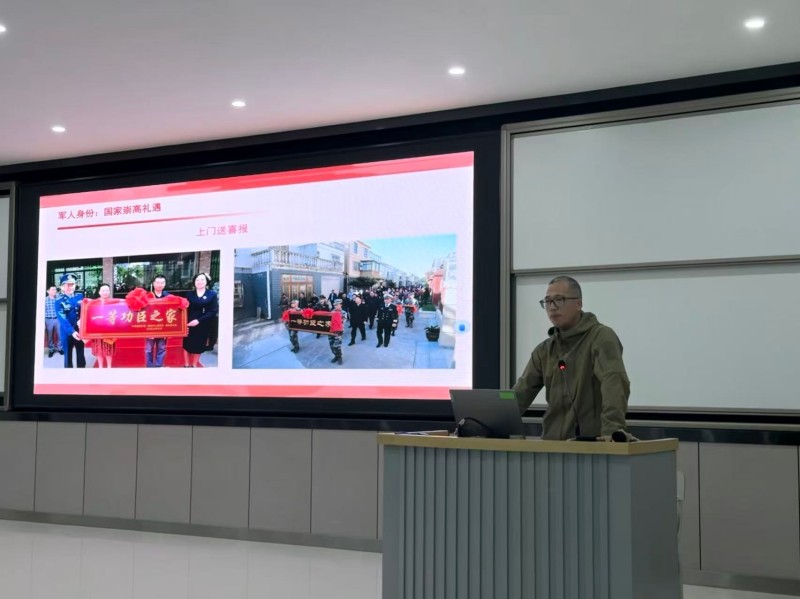 梁宝光股长紧接着全面讲解新会区现行优抚优待政策。他从服役期间待遇、退役安置保障、就业创业扶持、家属优待等方面,系统介绍经济补助、学历提升、就业服务、医疗保障等具体举措。进一步激发了青年学生投身国防事业的热情。
