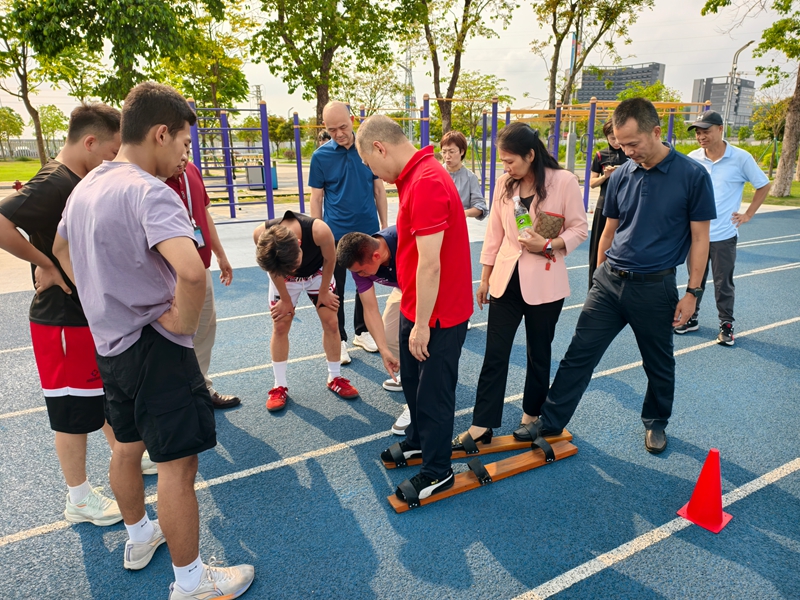 为沉浸式感受少数民族传统体育文化魅力,谭健文一行现场亲自上阵、亲身体验板鞋竞速等特色民族竞技项目,在步调协同、并肩配合的互动实操中,切身体悟民族体育运动手足同心、团结奋进的精神内核,近距离感受各民族交往交流交融的生动氛围,以一线实践深化民族工作思路。