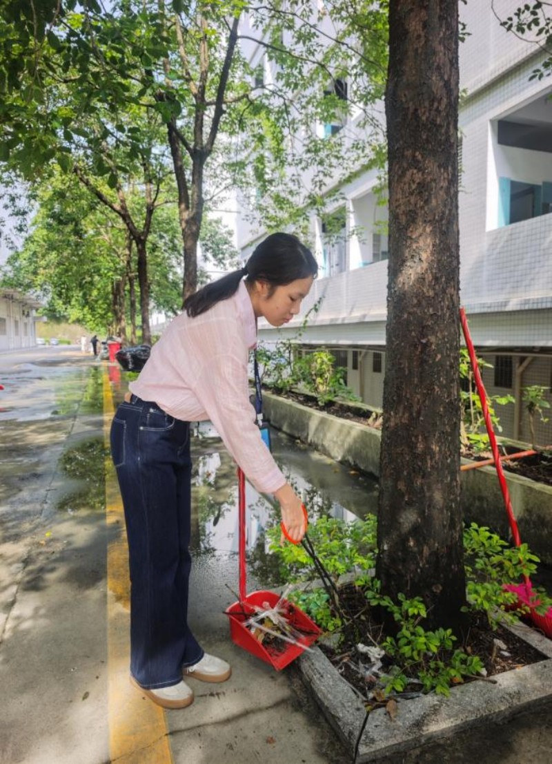 活动现场,大家分工明确、配合默契。手持清扫工具,对校园道路、绿化带等区域的杂物、落叶、杂草等进行细致清理。无论是路面的细碎垃圾,还是堆积的枯枝败叶,都被逐一清扫、装运,不放过任何卫生死角。